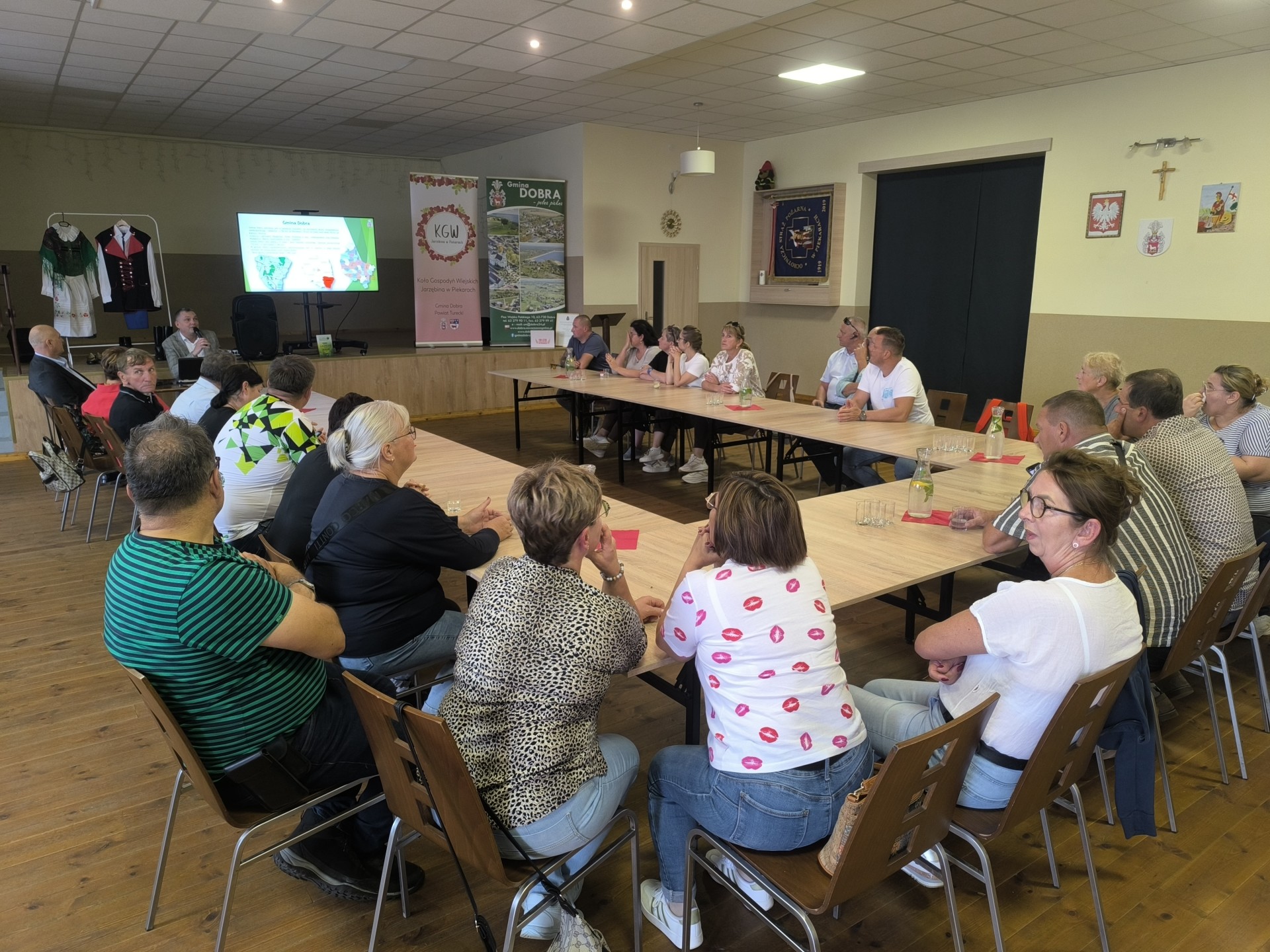 W dniu 19 września 2025 r. mieliśmy przyjemność gościć na terenie sołectwa Piekary uczestników wizyty studyjnej, której organizatorem był Urząd Marszałkowski Województwa Wielkopolskiego. W spotkaniu wzięli udział przedstawiciele Grup Odnowy Wsi z powiatu leszczyńskiego wraz z kierownikiem oddziału Odnowy Wsi w Departamencie Rolnictwa i Rozwoju Wsi UMWW panem Dominikiem Bekasiakiem. Gminę Dobra reprezentował Zastępca Burmistrza Dobrej Przemysław Tomczak, pracownicy Urzędu Miejskiego w Dobrej, przedstawicie grup odnowy wsi z terenu Gminy Dobra oraz przede wszystkim gospodarze wizyty, mieszkańcy sołectwa Piekary – członkowie Grupy Odnowy Wsi Sołectwa Piekary oraz członkinie KGW Jarzębina w Piekarach. Spotkanie zostało zorganizowane, aby omówić i zaprezentować projekty zrealizowane w ramach programu Wielkopolska Odnowa Wsi i miało na celu wymianę doświadczeń, prezentację dobrych praktyk czy poznanie specyfiki naszej działalności.