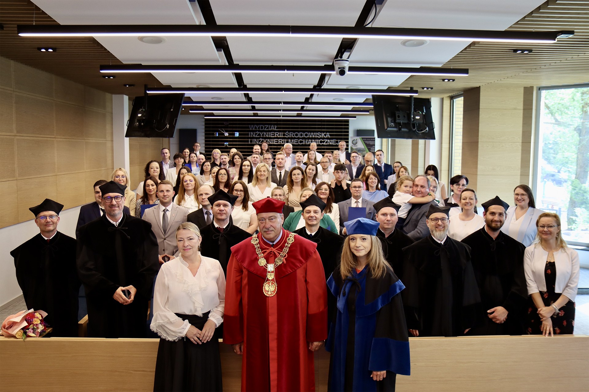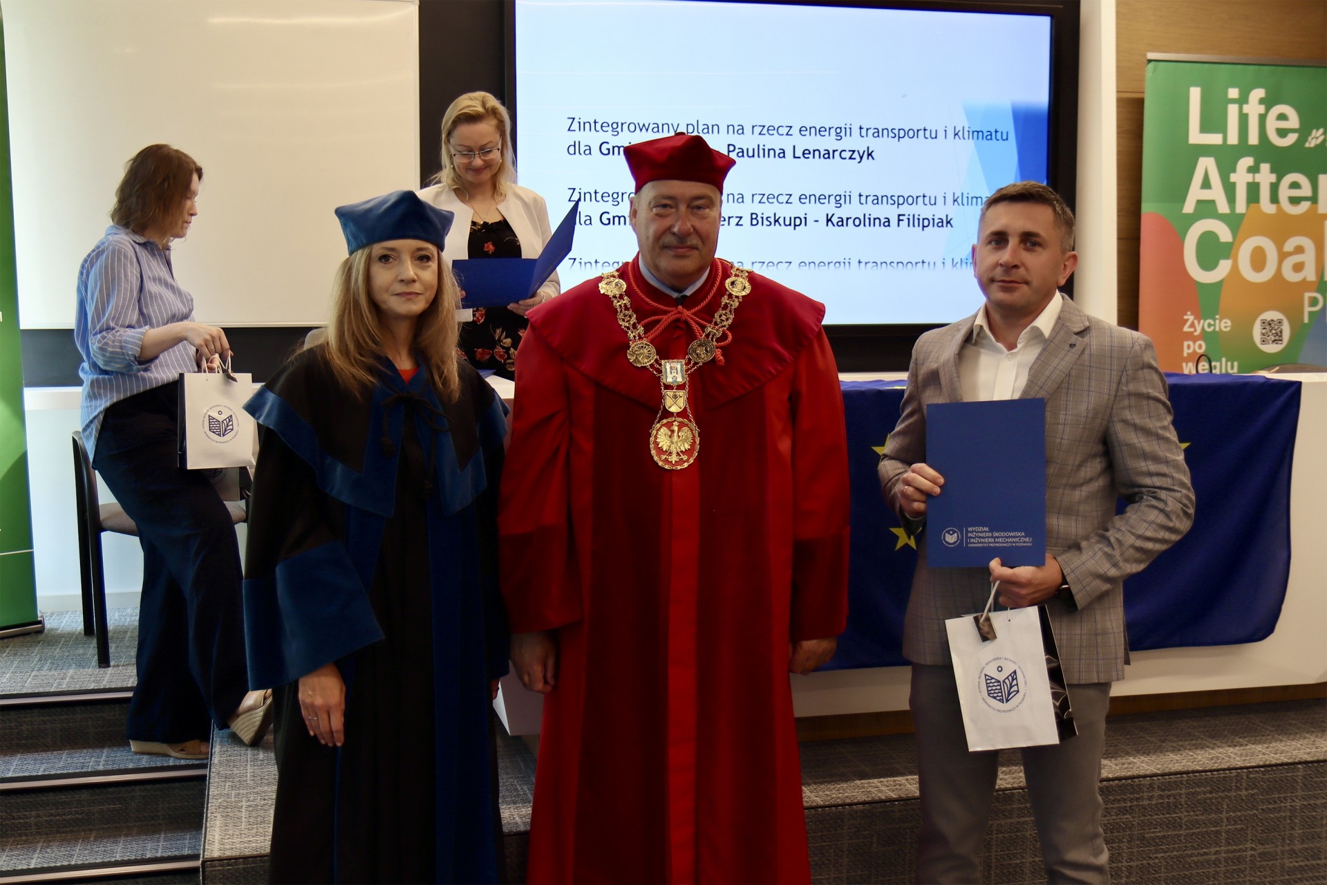 Uroczystość zgromadziła około 60 uczestników – wśród nich burmistrzów, wójtów i prezydentów miast oraz powiatów województwa wielkopolskiego, współbeneficjentów projektu LIFE After Coal oraz wykładowców. Absolwenci odebrali dyplomy ukończenia studiów i pamiątkowe upominki z rąk prof. Piotra Ślósarza oraz prof. Anny Szymczak-Graczyk.